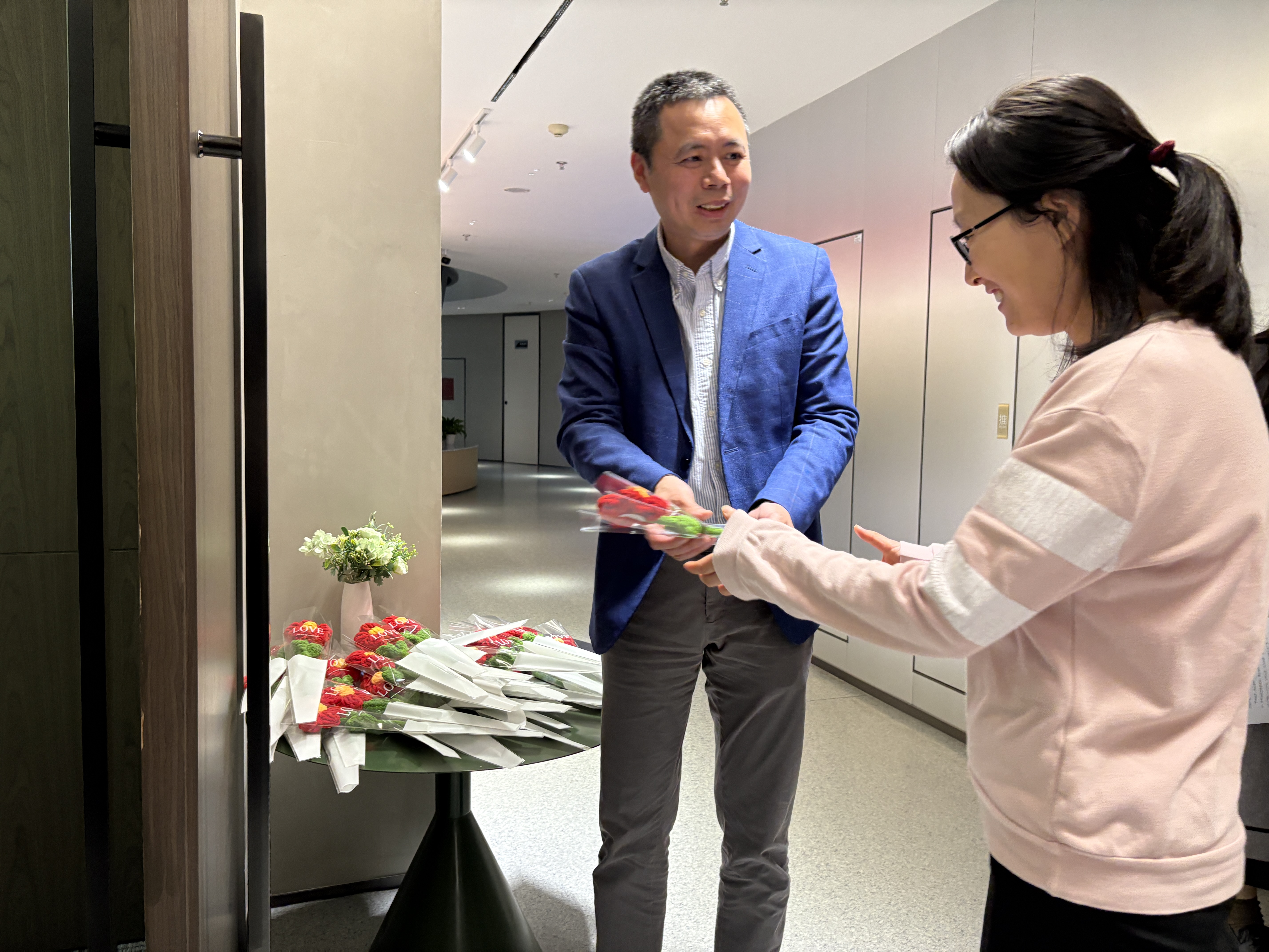 活動伊始,公司總經(jīng)理韓高典代表公司向女職工們獻(xiàn)上一朵朵手工毛線編織的 “大紅花”。這不僅是對大家工作的肯定與感謝,更寓意著她們永遠(yuǎn)蓬勃的生命力,為整個婦女節(jié)活動拉開了溫暖而美好的序幕。