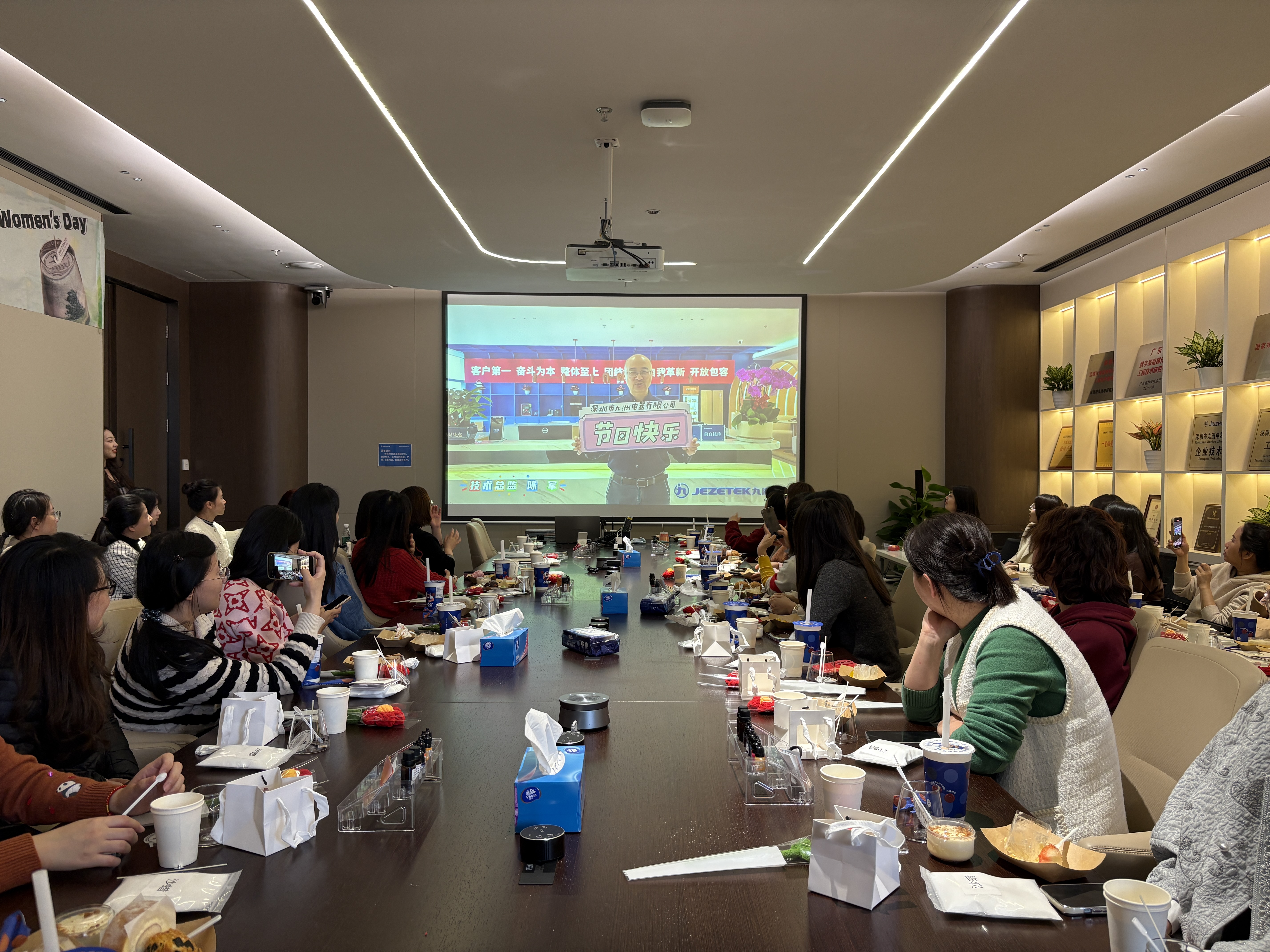 隨后,一段特別的祝福視頻映入眼簾。公司的男職工代表們紛紛出鏡,平日里在工作中嚴(yán)謹(jǐn)專注的他們,此刻滿是真誠與溫柔。一聲聲祝福,為這個專屬的節(jié)日增添了一抹別樣的溫暖,也讓現(xiàn)場氛圍充滿了溫馨和快樂。
