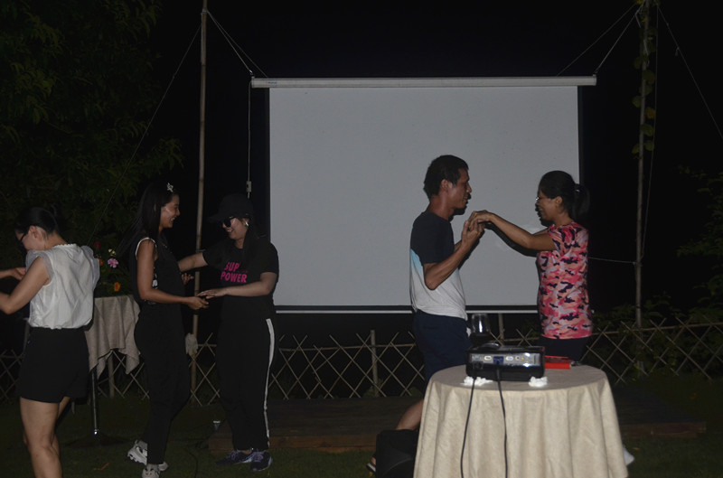 隨后,即興表演的節(jié)目也相當(dāng)豐富,大家紛紛自告奮勇上臺(tái)表演,有跳邁克杰克遜舞步的,有跳機(jī)械舞的,有跳恰恰舞的,有唱歌的,有朗誦詩(shī)詞的,有講笑話的,有發(fā)表個(gè)人感想的......大家在載歌載舞、推心置腹交流中結(jié)束了團(tuán)建活動(dòng)的最后一個(gè)環(huán)節(jié)!