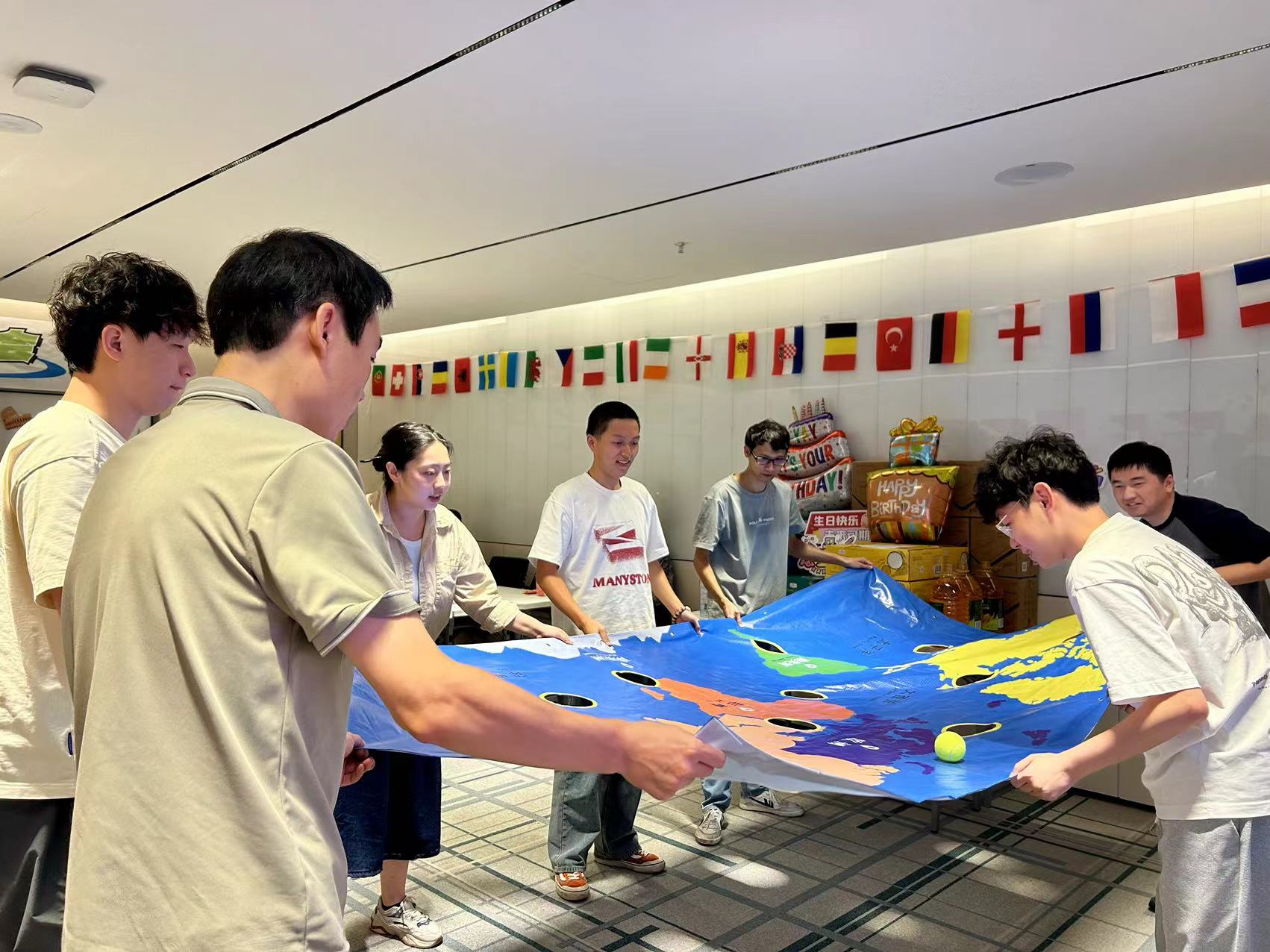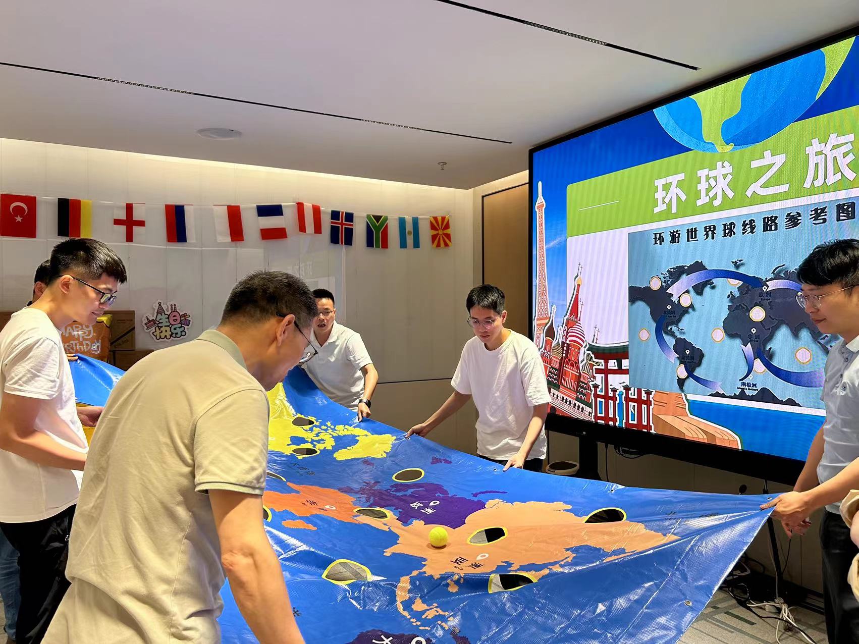 本次生日會的游戲環(huán)節(jié),為了貼近“環(huán)球”的主題,展現(xiàn)公司作為集團國際貿(mào)易橋頭堡的風(fēng)采,壽星們分為“擁抱世界”、“放眼全球”兩個隊伍,開始了兩輪精彩對決!