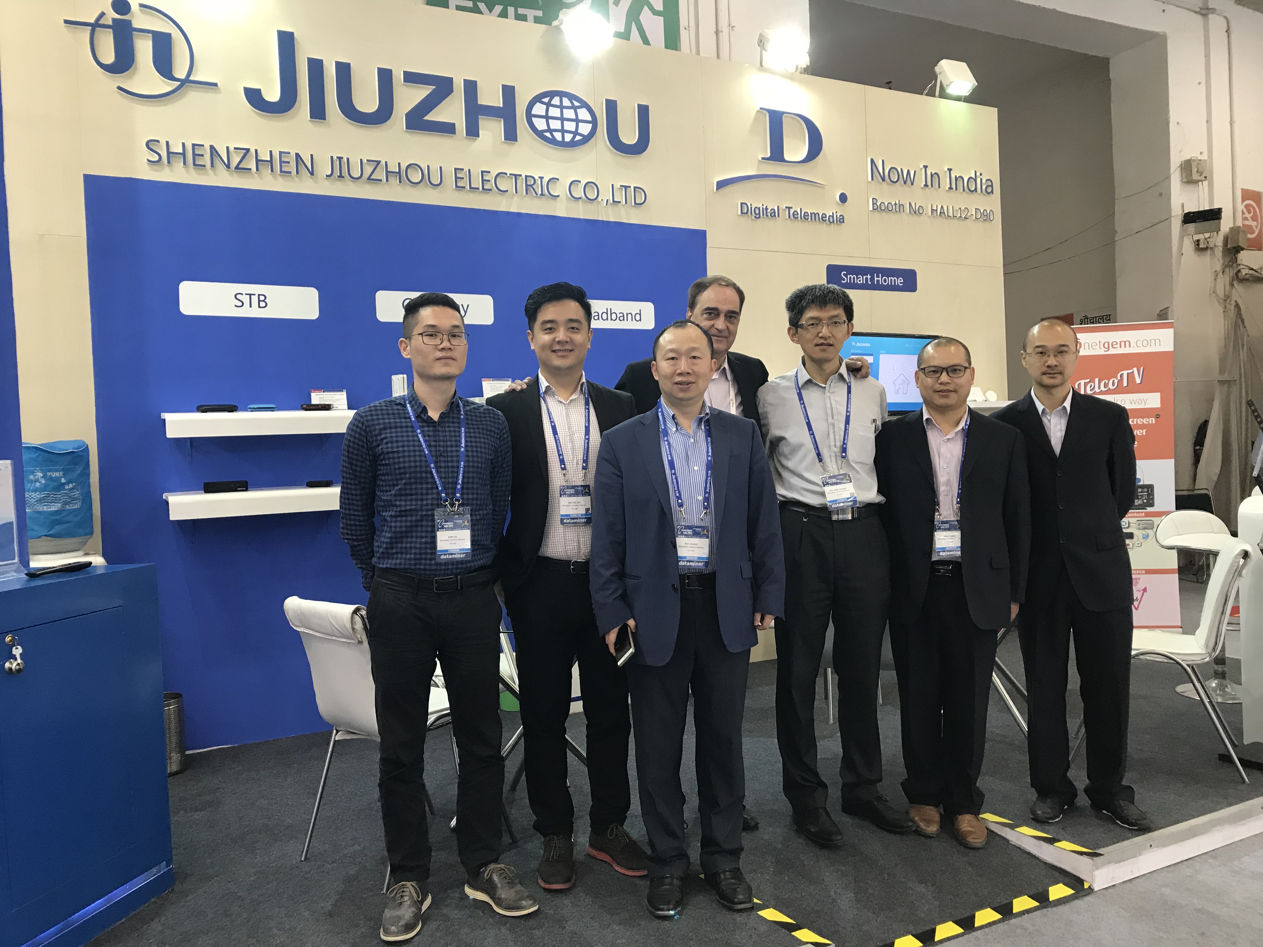 展會現(xiàn)場情況:深圳九洲2018年自主參加印度Convergence展,至2017年參展開始,已連續(xù)參加2屆該展會,深圳九洲憑借自身實力的展示和展會本身在廣電行業(yè)的知名度,整體獲得了良好的效果。深圳九洲此次展會除了派出優(yōu)秀的銷售人員外,一些優(yōu)秀的技術人員例如DVB產品線、VAS產品線技術總監(jiān)也參加了此展會,現(xiàn)場給客戶解決了各種技術疑惑。深圳九洲本次展會攜帶樣機多,Demo 多樣化,展位位置佳,成功吸引眾多參觀商的駐足咨詢,同時與我司重要的客戶以及合作伙伴維護了良好的合作關系。Convergence 展已經舉辦了第26 屆,作為印度最大的通信展,此次參展商產品類型涉及各系列STB、智能家居產品、Andriod TV、便攜式通訊終端、網絡設備、無線裝置等。 展示產品:全系列以及熱銷產品、Andriod TV系統(tǒng)方案展示:智能家居
