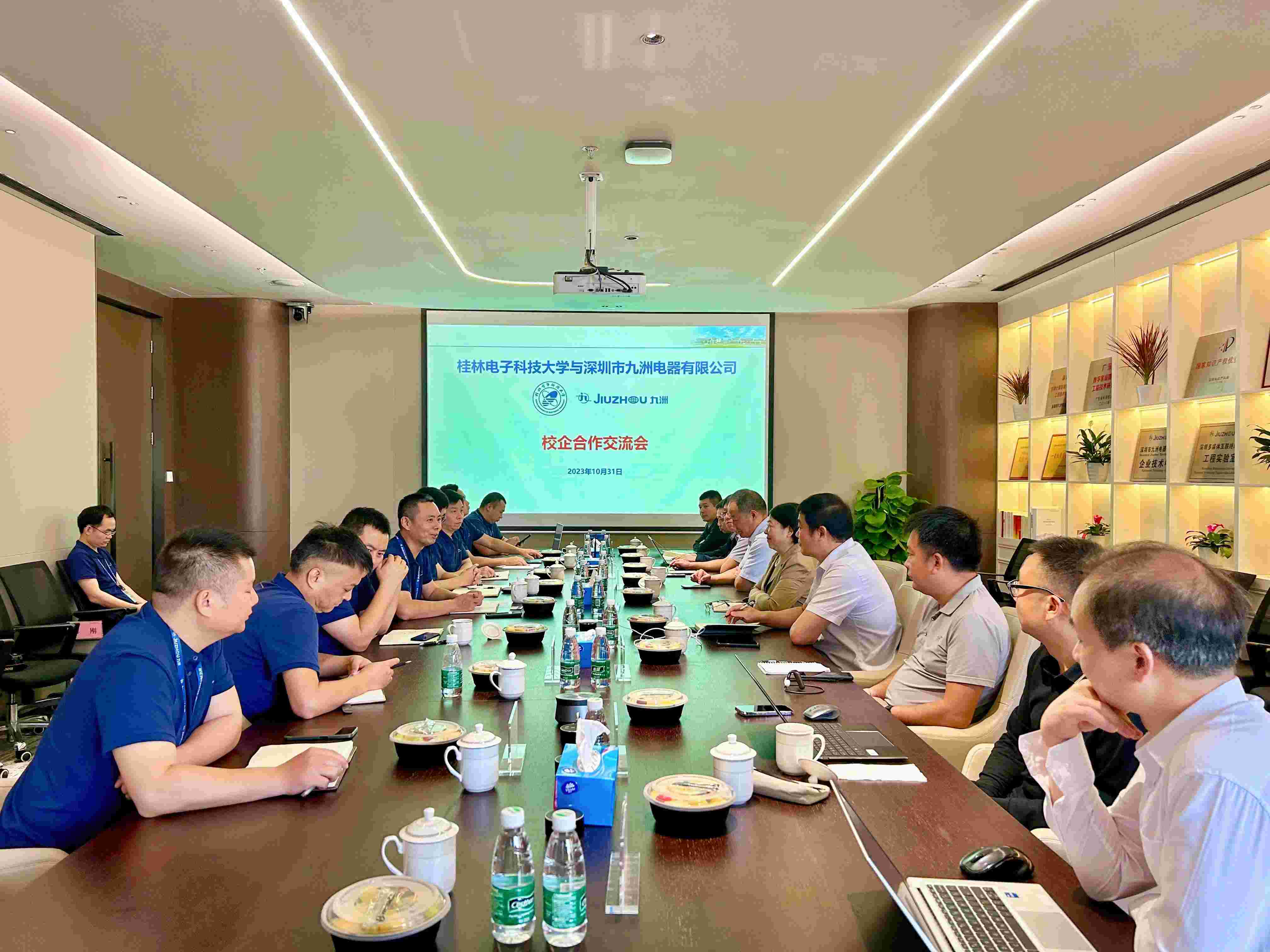 為加強校企合作交流,實現(xiàn)校企優(yōu)勢互補、資源共享,探索產(chǎn)教融合新模式,10月31日上午,桂林電子科技大學副校長周婭一行蒞臨深圳市九洲電器有限公司參觀調(diào)研,并就“校企合作、產(chǎn)教融合”展開深入交流。公司總經(jīng)理韓高典、副總經(jīng)理石旭科、夏兵及桂電校友代表參加了接待交流。