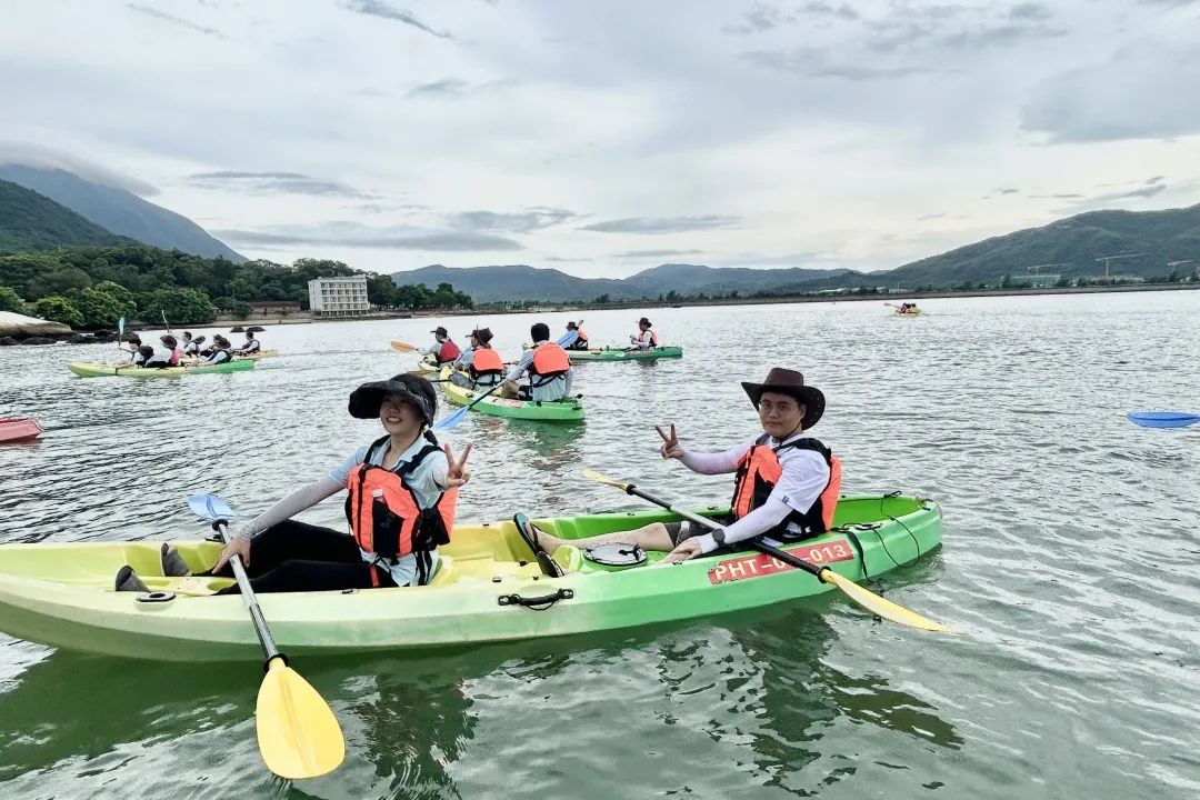 由專業(yè)的皮劃艇教練為大家做皮劃艇專業(yè)動(dòng)作要領(lǐng)和安全注意事項(xiàng)的培訓(xùn),大家認(rèn)真聆聽并迅速掌握要領(lǐng)。培訓(xùn)結(jié)束后,大家躍躍欲試,穿上救生衣,踏上皮劃艇,撐起長船槳,自由練習(xí),一陣陣歡聲笑語和整齊的“左、右、左、右...”打破了海面的平靜。