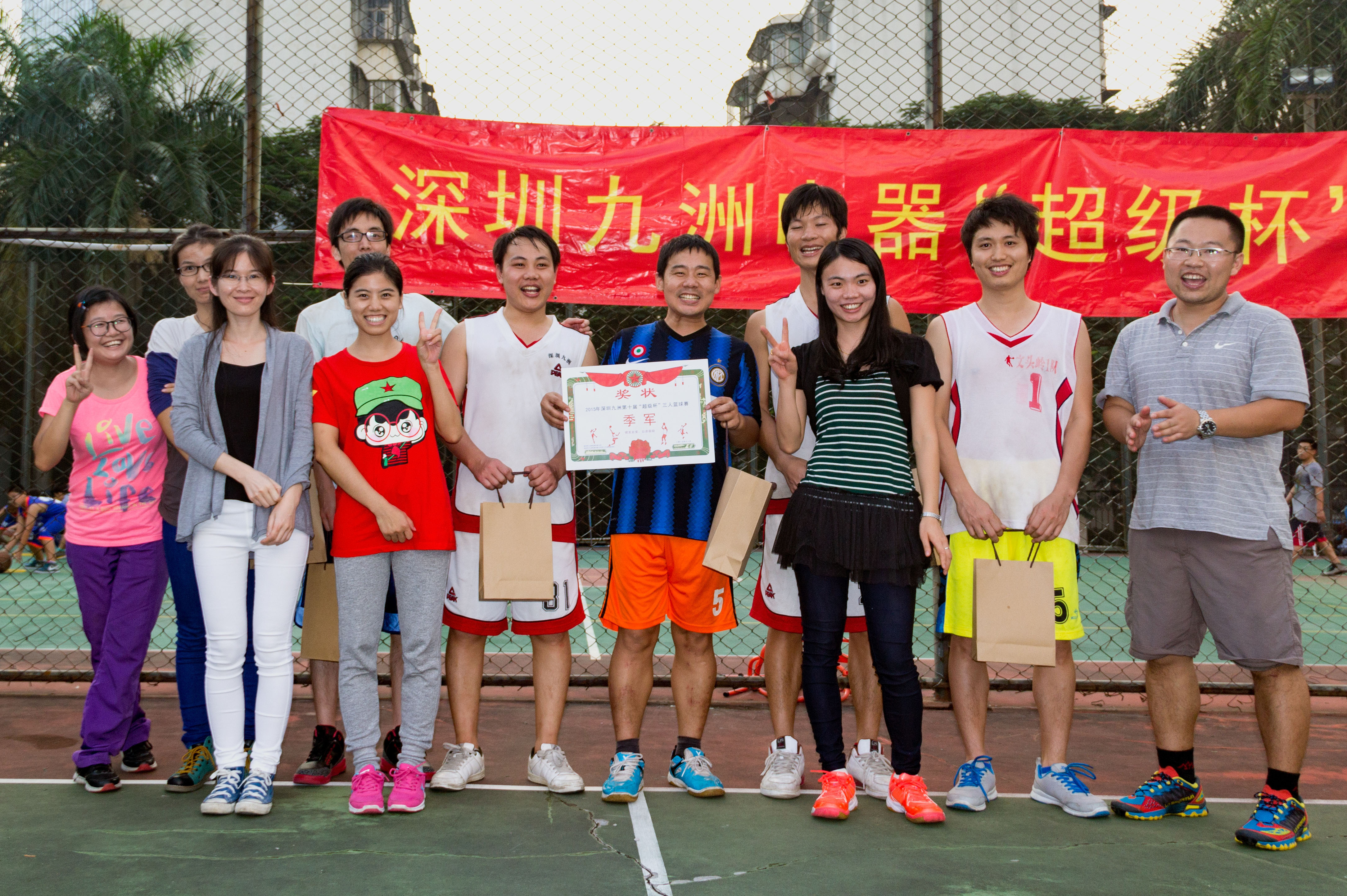 2015年11月14日,下午13時(shí),深圳九洲第八屆“超級杯”籃球賽隨著一聲哨響正式拉開戰(zhàn)幕。 報(bào)名參加比賽有12支隊(duì)伍,分為4個(gè)小組進(jìn)行比賽淘汰制,運(yùn)動員們在場下是親密無間的同事,在球場上卻是你爭我趕,不放過任何一個(gè)得分的機(jī)會。歡呼聲、喝彩聲此起彼伏,經(jīng)過3小時(shí)的艱苦鏖戰(zhàn),籃筐終結(jié)者憑借良好的團(tuán)隊(duì)配合和戰(zhàn)術(shù)運(yùn)用,最終獲得冠軍;亞軍“技術(shù)支持部”、季軍“515又浪”、3分球冠軍程炳財(cái),本屆籃球賽圓滿結(jié)束。