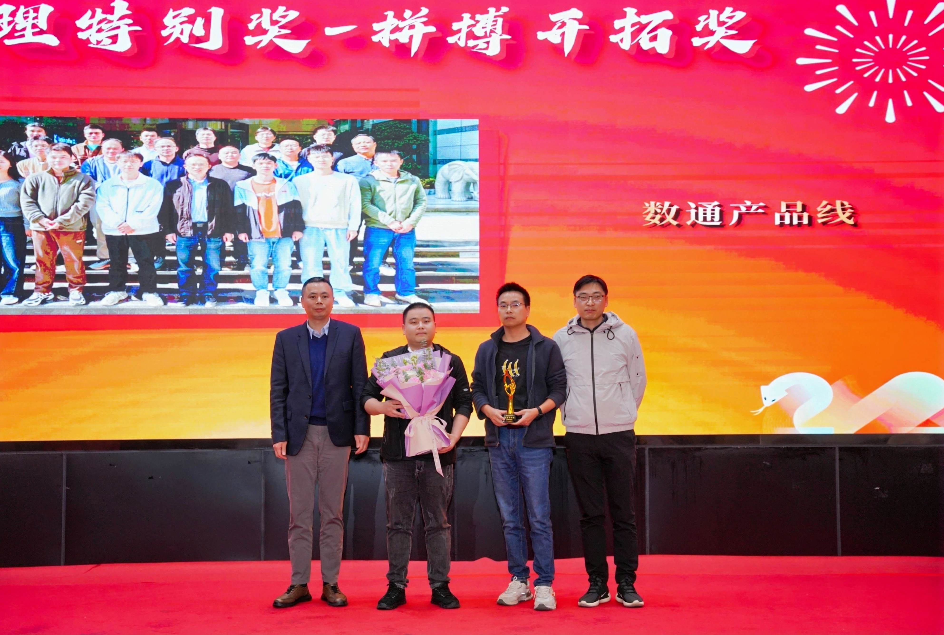 在本年度的總經(jīng)理特別獎(jiǎng)中,韓總為數(shù)通產(chǎn)品線頒發(fā)了拼搏開(kāi)拓獎(jiǎng),對(duì)數(shù)通產(chǎn)品線從0到1的突破表示肯定,并激勵(lì)團(tuán)隊(duì)為數(shù)通業(yè)務(wù)發(fā)展繼續(xù)奮勇前進(jìn),堅(jiān)定了公司對(duì)數(shù)通業(yè)務(wù)的發(fā)展信心。
