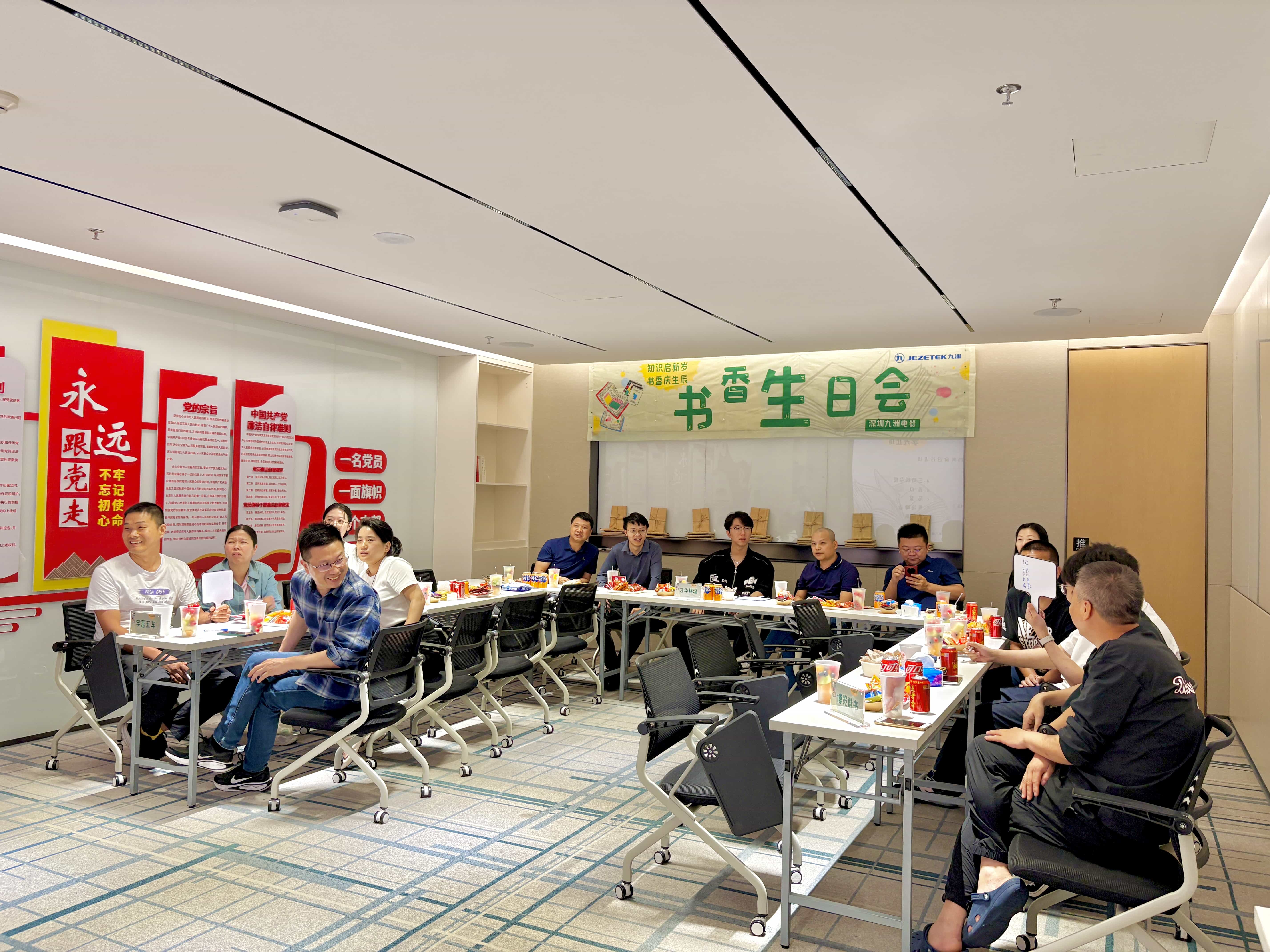 知識啟新歲,書香慶生辰,4月23日,在第29個(gè)世界讀書日來臨之際,深圳九洲電器組織開展了一場以“書香”為主題的生日會(huì)。這場特別的生日會(huì),不僅為3月、4月生日的同事們送上溫暖祝福,更是鼓勵(lì)大家拓寬視野、持續(xù)精進(jìn),通過持續(xù)閱讀和學(xué)習(xí),將所學(xué)融入工作,在創(chuàng)新發(fā)展的道路上不斷突破自我。