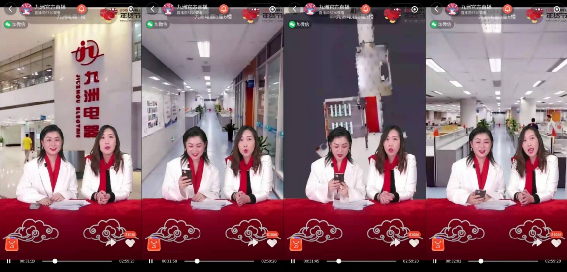 九洲線上年貨節(jié)以“科技創(chuàng)新、數(shù)字直播”為特色,“與時(shí)俱進(jìn),創(chuàng)新求勝”為目的,以“商品鉅惠大放送”為核心,以傳承中國(guó)優(yōu)秀文化傳統(tǒng)為內(nèi)涵。由九洲電器的老員工們溫情擔(dān)任“一線主播”,講述個(gè)人與九洲的相融共生的成長(zhǎng)故事,在線上與九洲員工一一問候。助播選品組通過精選年貨,向線上的九洲家人推薦性價(jià)比極高的美味佳肴、服裝美容、電子通訊、清潔衛(wèi)生等與人們生活息息相關(guān)的各式各樣特價(jià)商品,營(yíng)造了一種節(jié)日喜慶的親民購(gòu)物氣氛。