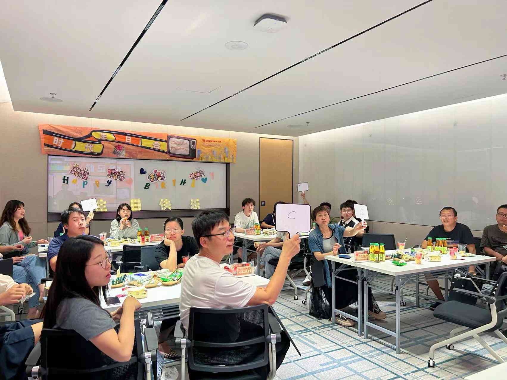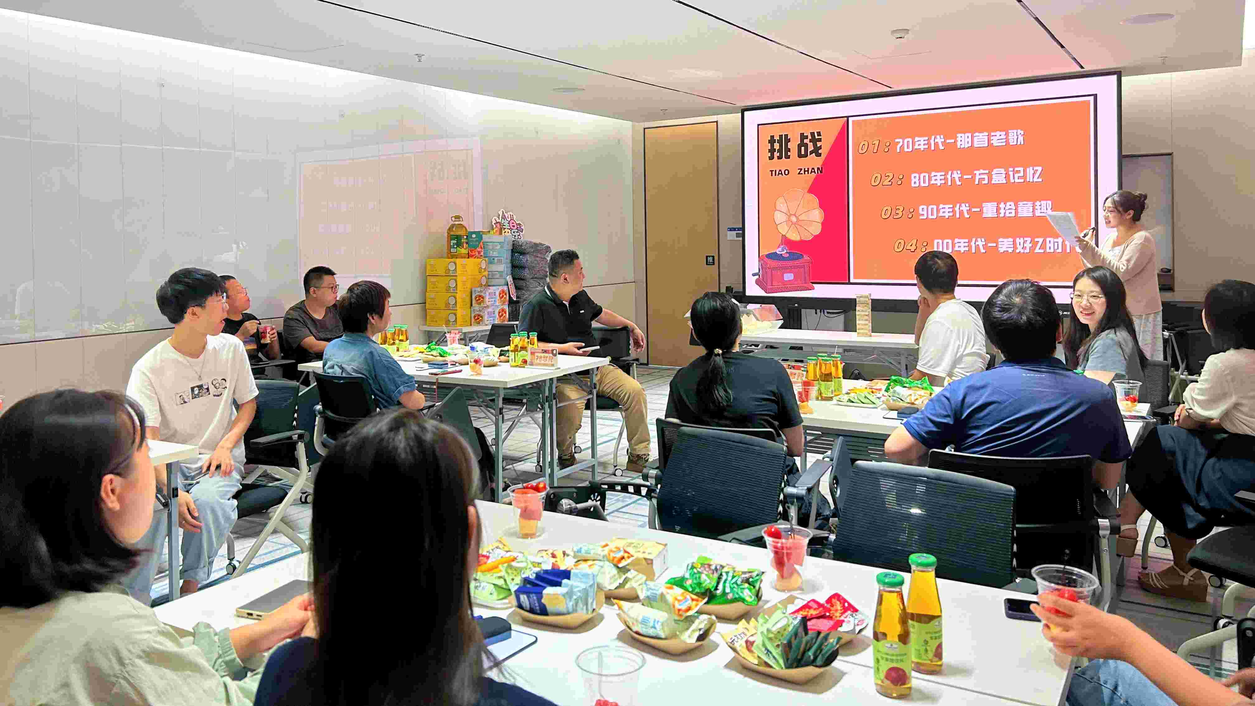 隨后,生日會上上演了一場深九人的“年代秀”,壽星們自動分為70、80、90、00四支隊伍,共同挑戰(zhàn)“那首老歌”、“方盒記憶”、“重拾童趣”、“美好Z時代”四個項目,開啟了跨越時空的回憶之旅,體會了70一代的艱苦奮斗、80一代的使命擔(dān)當(dāng)、90一代的變革創(chuàng)新、00一代的朝氣蓬勃。