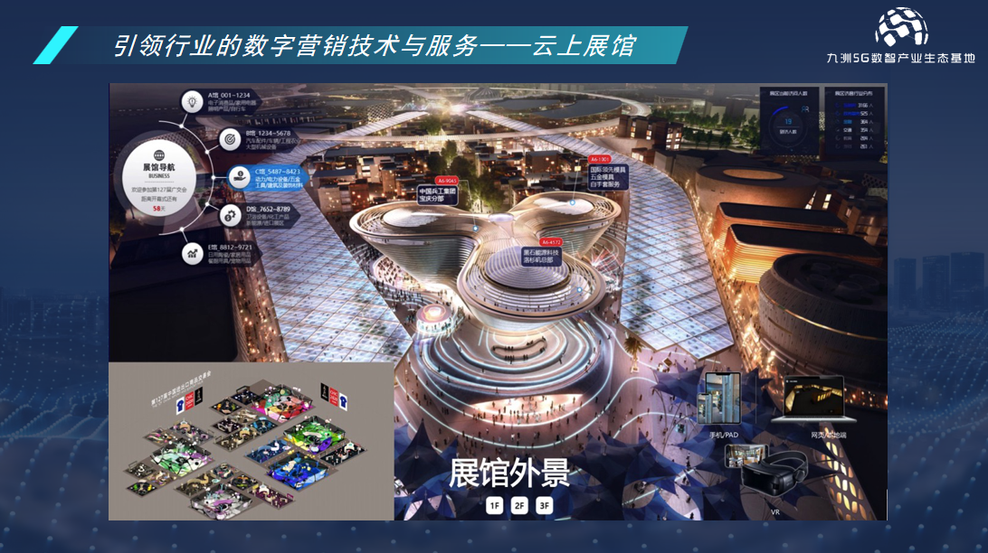 今年的廣交會(huì)上,云展會(huì)成為一大亮點(diǎn)。而為企業(yè)搭建4D實(shí)景上云展示平臺(tái)、為園區(qū)生態(tài)企業(yè)搭建云展館……在各種“上云”服務(wù)中,亦不乏九洲的身影。